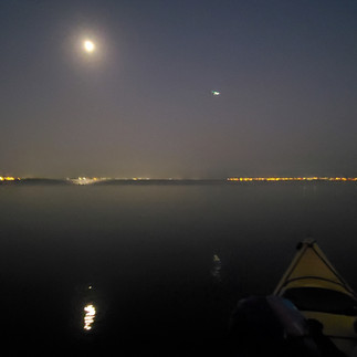 The sun was setting, and even after the day we had, we lingered on the water there that night. Knowing that we had made it and remembering why we love to kayak. We gazed into the dark sky and out onto the dark water and at the bridge we just conquered. The lights of it and the cars driving by were silent and magical. This remains one of the most beautiful paddle moments of my life.