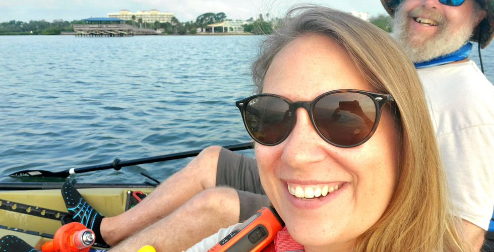 severe back pain (unbeknownst to me at the time), he was making jokes the whole last leg. He noticed my paddling had gotten slower, so challenged me to a race. We made it to the top and turned around to paddle back down and Kevin was still lively. We enjoyed seeing the extinct Tocobaga Tribe's mound, said to protect Tampa Bay from hurricanes.
